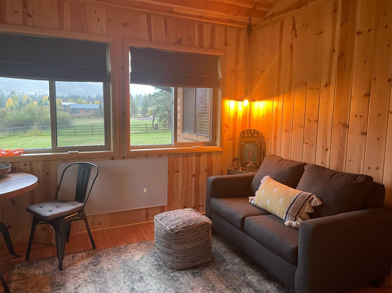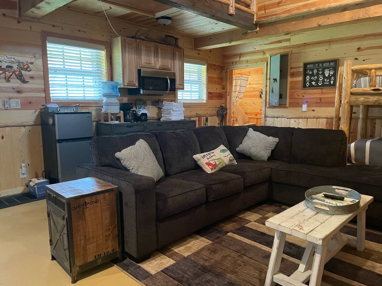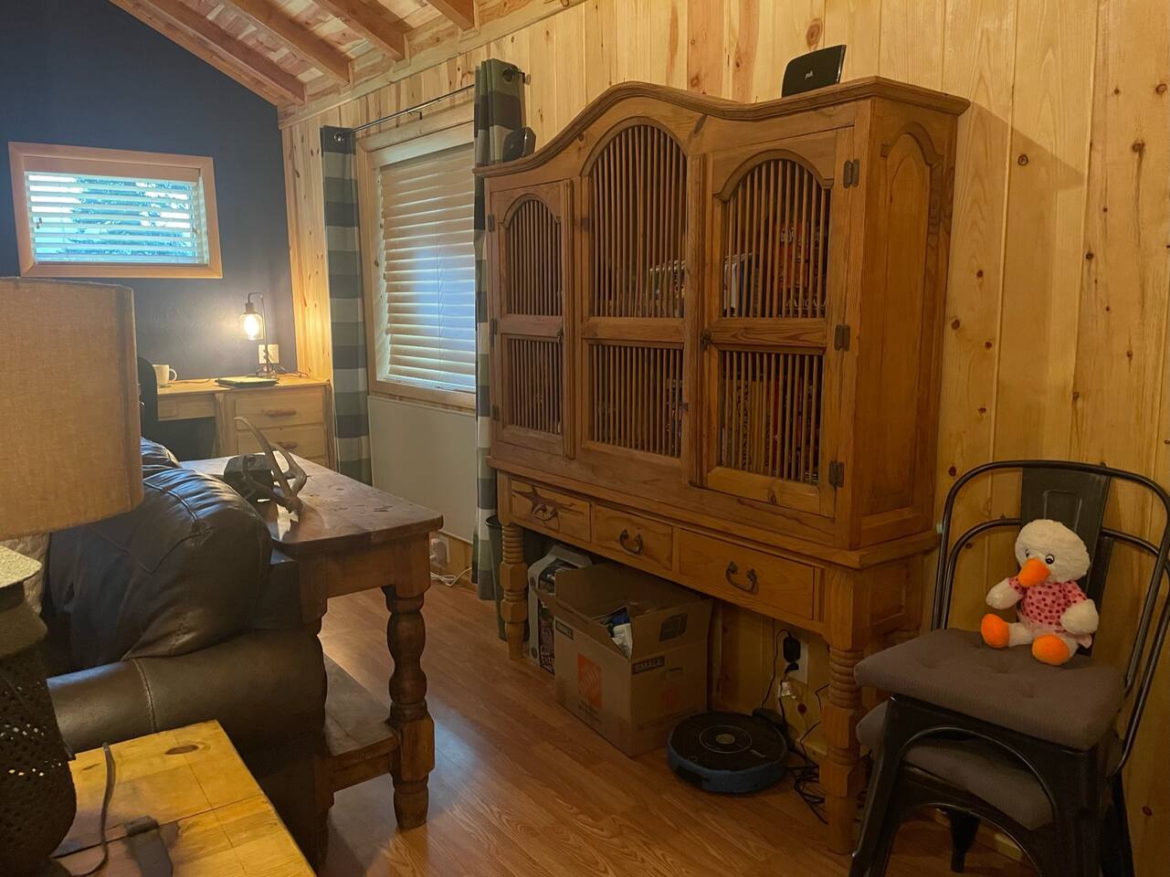 Perfect for a family reunion and large groups! No dogs or weddings-sorry! Our 2 acre lot has 4 separate living units that sleeps 20 total (4-6/unit). Perfect for multiple families or groups that want to spend time together with a private place to escape to. A quick 5 minute walk to 2 restaurants and a coffee truck. Free EV charging. One acre has a natural spring-fed pond and the other acre is a fully fenced grass yard. Our cabins are far enough of the road to feel completely secluded and quiet.