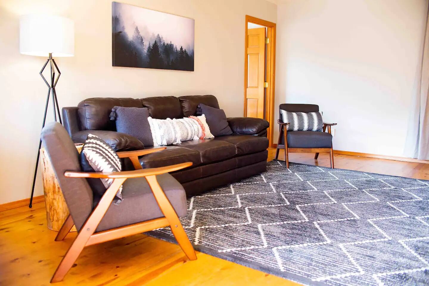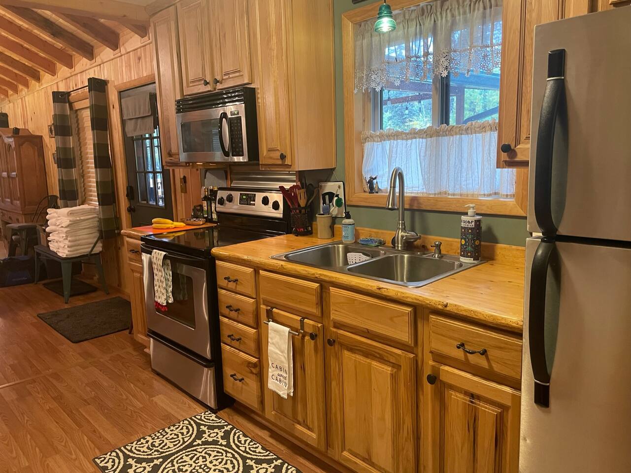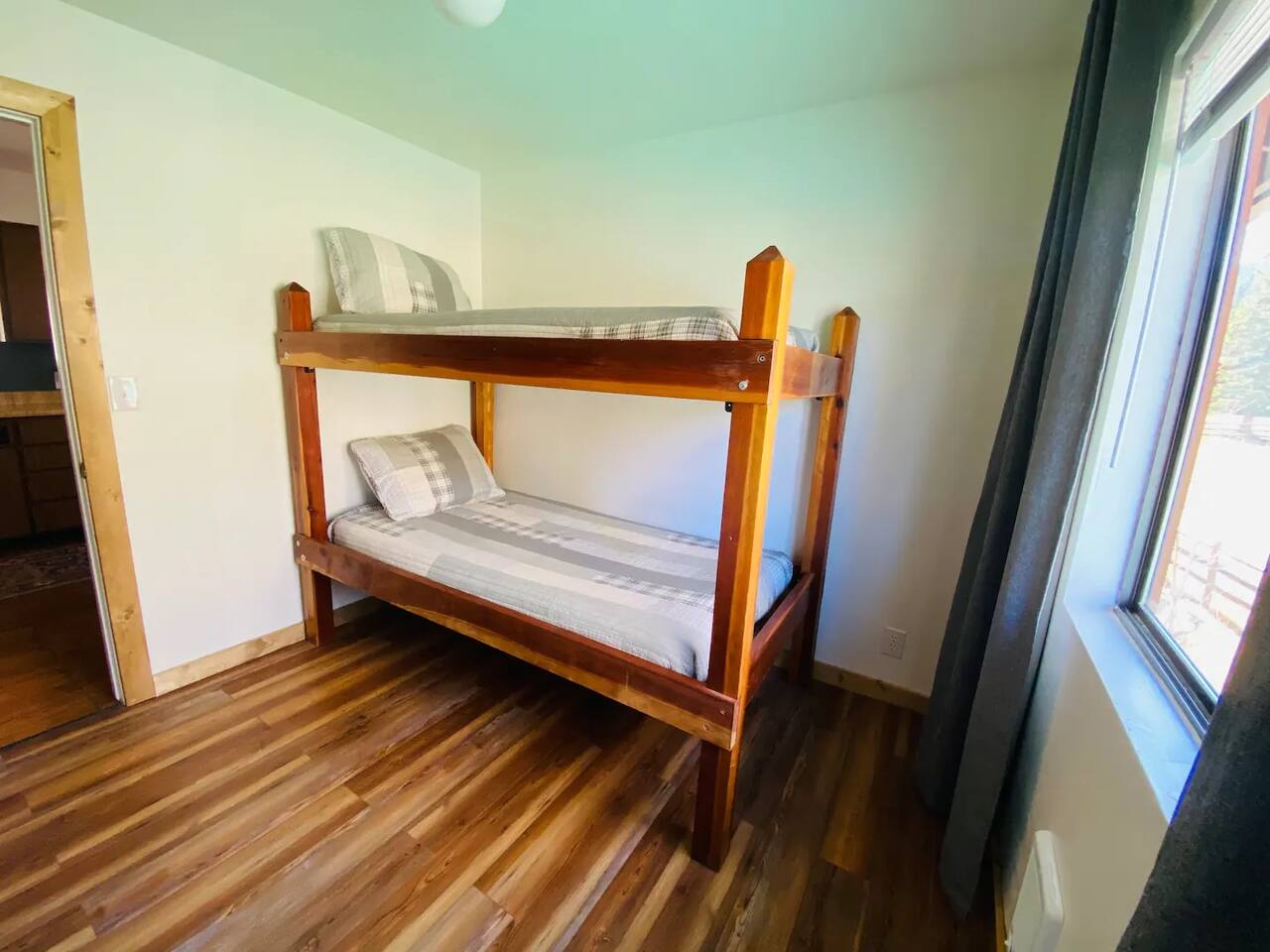 Perfect for a family reunion and large groups! No dogs or weddings-sorry! Our 2 acre lot has 4 separate living units that sleeps 20 total (4-6/unit). Perfect for multiple families or groups that want to spend time together with a private place to escape to. A quick 5 minute walk to 2 restaurants and a coffee truck. Free EV charging. One acre has a natural spring-fed pond and the other acre is a fully fenced grass yard. Our cabins are far enough of the road to feel completely secluded and quiet.