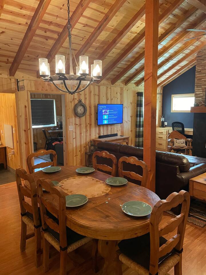 We have dog allergies in our family and cannot host pets - sorry! Our 3 cabins have four private units with separate entrances. Our cabins are perfect for large family or large group getaways. Altogether we have 7 bedrooms/5 bathrooms/1 king bed/3 queen beds/1 queen sofa bed/1 full sofa bed/6 twin beds/1 twin sofa bed - sleeps up to 19. An second story outdoor patio bar top for 8 with the best view in Greer. Free EV Charging - 5.7 Kw (240v/24amp-J1772). A treehouse and rock climbing wall for the kids... or adults, if that's your thing! Our cabin is not pet friendly - our kids have dog and cat allergies and we use the cabin frequently. Our 2 acre property has lots of outdoor spaces to enjoy the beautiful Greer weather and views. Our cabin on the lower acre has 2 patios with stunning views of our private pond and the mountains around Greer. Our pond is naturally spring-fed and we are the first pond of many that the spring feeds. It is approximately 90' x 40' and about 3' deep in the middle. Our kids love to catch crawdads and minnows in the pond. We enjoy that they are occupied, and we can get quiet time while enjoying the views. The cabin on the upper acre has a large deck overlooking our fully fenced grass yard. Wake up early in the morning and sit out on the deck with a cup of coffee to see the elk and deer "mowing our lawn." The upstairs unit of the cabin by the pond is ~800 square feet, has a full kitchen, laundry closet (bring your own laundry detergent), a room with a queen bed, a room with twin bunk beds, a queen sleeper sofa, a full bathroom, a large living room with amazing views of Greer, a dining table for 6, indoor bar seating for 3, an outdoor patio bar top with seating for 8, a large leather sofa, 2 recliners, blazing fast Starlink wifi, a large flat screen TV with Roku. The living room has a pellet stove, but we do not stock pellets. The downstairs unit of the cabin by the pond is ~600 square feet, has a room with a queen bed, a room with two twin beds, 3/4 bathroom (has a shower - no bathtub), kitchenette (mini-fridge, microwave, coffee maker, and sink), a living room with a couch, chairs, blazing fast Starlink wifi, a large flat screen TV with Roku. The main cabin of our upper acre is ~1300 square feet, has a full kitchen, laundry closet (bring your own laundry detergent), a room with a king bed, a room with a queen bed, a pullout couch (twin size), 2 bathrooms, a large and cozy living room, a dining table for 6-8, multiple comfy couches, blazing fast Starlink wifi, a large flat screen TV with Roku, and 2 desks/workspaces. Our bunkhouse is ~500 SF, has a kitchenette (mini-fridge, coffee maker, and microwave), bunk beds (2), a full pullout couch, a bathroom with a beautiful claw foot soaking tub, couches, a table with seating for 4, blazing-fast Starlink wifi, a large flat screen TV with Roku. When it's time to eat, we have two fully stocked kitchens with everything you need to feed a crowd. Each kitchen has a full oven and stove, microwave, and all the kitchen utensils and supplies you need. We also have 2 propane BBQ grills available on the patios. Don't feel like cooking? Molly Butler Lodge and Restaurant and Rendezvous Diner are both a short 5-10 minute walk away. There are 2 more restaurants within a 5 minute drive. Take the quick 15-20 minute drive to Eager/Springerville for almost any dining genre you want. Long day hiking the White Mountain trails or tearing up the slopes at Sunrise Ski Resort? We supply fresh towels, shampoo, conditioner, and soap. Wash and dry your clothes and be ready to take on the next day feeling fresh and clean!