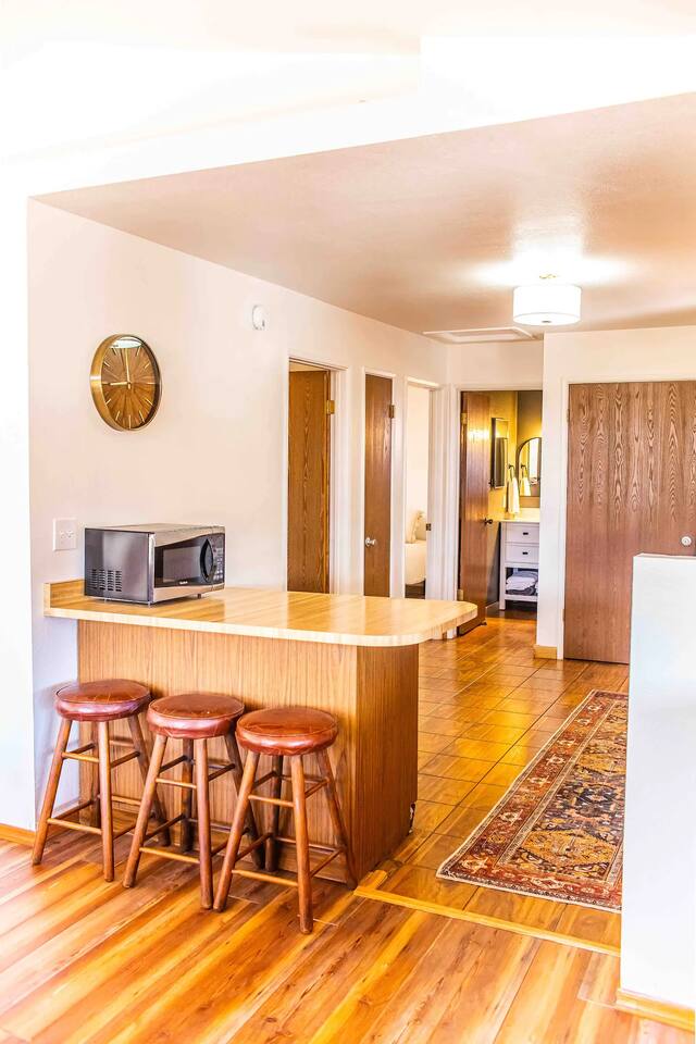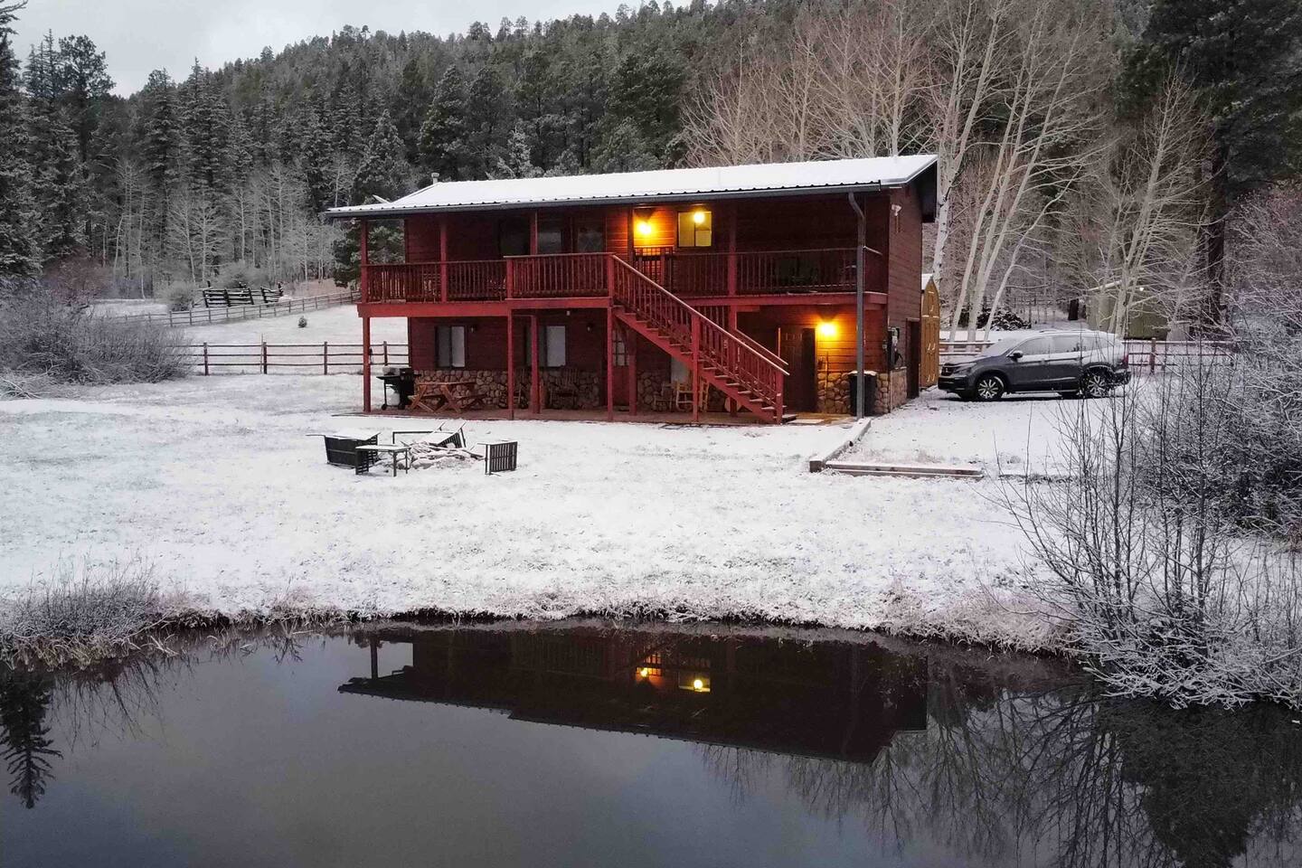 We have dog allergies in our family and cannot host pets - sorry! Our cabin has two separate units with separate entrances, but we rent it as one unit together. When we visit, we like to put the kids downstairs and escape to peace and quiet upstairs. Our cabin is perfect for large or multi-families. Altogether we have 4 bedrooms/2 bathrooms/2 queen beds/4 twin beds/2 queen sleeper sofas - sleeps 12. Our 1 acre property has 2 large patios - one upstairs and one downstairs. Both patios have stunning views of our private pond and the mountains around Greer. Our pond is naturally spring-fed and we are the first pond of many that the spring feeds. It is approximately 90' x 40' and about 3' deep in the middle. Our kids love to catch crawdads and minnows in the pond. We enjoy that they are occupied and we can get quiet time while enjoying the views. The upstairs unit has a full kitchen, laundry closet (bring your own laundry detergent), a room with a queen bed, a room with twin bunk beds, a queen sleeper sofa, a full bathroom, a large living room with amazing views of Greer, a dining table for 6, indoor bar seating for 3, an outdoor patio bar with seating for 8, a large leather sofa, 2 recliners, blazing fast Starlink wifi, a large flat screen TV with Roku. The living room has a pellet stove, but do not supply pellets. Downstairs has a room with a queen bed, a room with two twin beds, a queen sleeper sofa, 3/4 bathroom (shower - no bathtub), kitchenette (mini-fridge, microwave, and sink), a living room with a couch, chairs, blazing fast Starlink wifi, a large flat screen TV with Roku. When it's time to eat, our upstairs kitchen has everything you need to feed everyone. A full oven and stove, microwave, and all the kitchen utensils and supplies you need. We also have a propane BBQ grill on the downstairs patio. Don't feel like cooking? Molly Butler Lodge and Restaurant and Rendezvous Diner are both a short 5-10 minute walk away. There are 2 more restaurants within a 5 minute drive. Take the quick 15-20 minute drive to Eager/Springerville for almost any dining genre you want. Long day hiking the White Mountain trails or tearing up the slopes at Sunrise Ski Resort? We supply fresh towels, shampoo, conditioner, and soap. Wash and dry your clothes and be ready to take on the next day feeling fresh and clean!